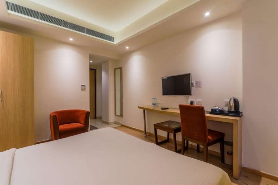 Experience comfort and affordability at our Deluxe in Lucknow's Hotel Surya Grand. Well-furnished and designed rooms feature air-conditioning, ergonomic work area, and LED HD TV. It comes with fine curtains and tea and coffee amenities . Attached bathrooms include free toiletries and a shower with cold and hot water facilities. Guests can make use of community table, tea trolley, lounge and ironing services.